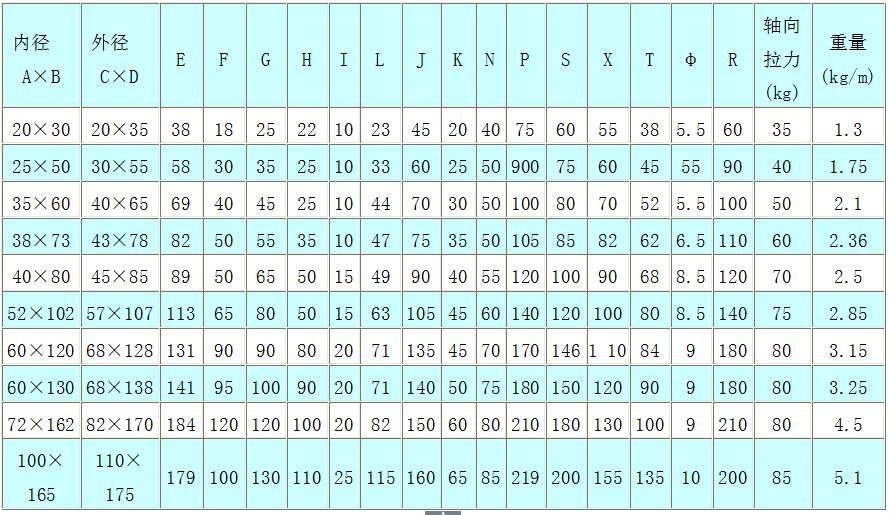 接頭尺寸及規(guī)格參數(shù)表: